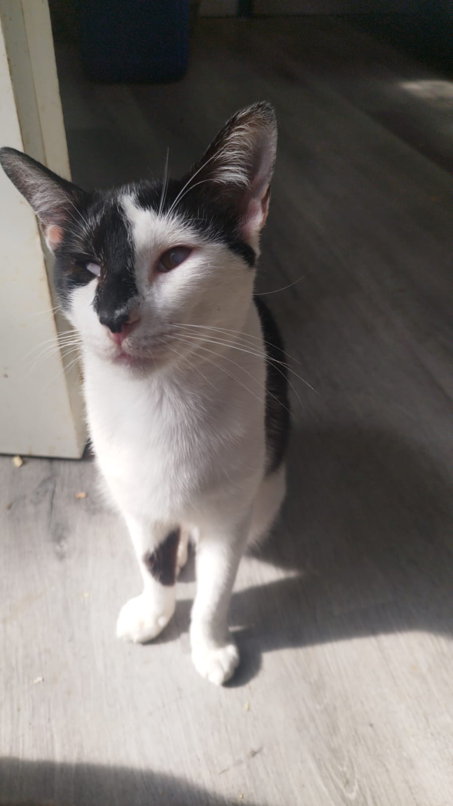 Er wurde mit seinen Geschwister gefunden , da waren sie erst ein paar Tage / Wochen alt. Leider hatten sie alle schon beim auffinden Katzenschnupfen und dadurch haben sie eine leichte Veränderung der Augen zurück behalten.