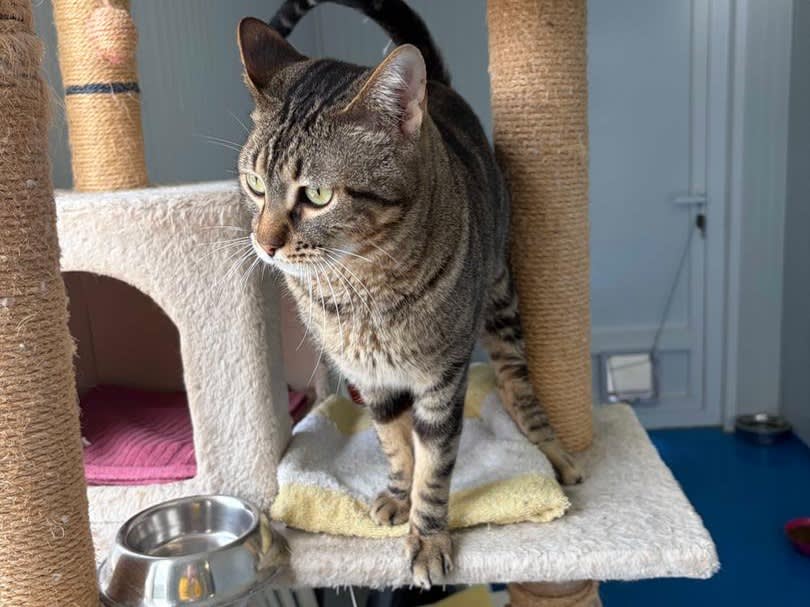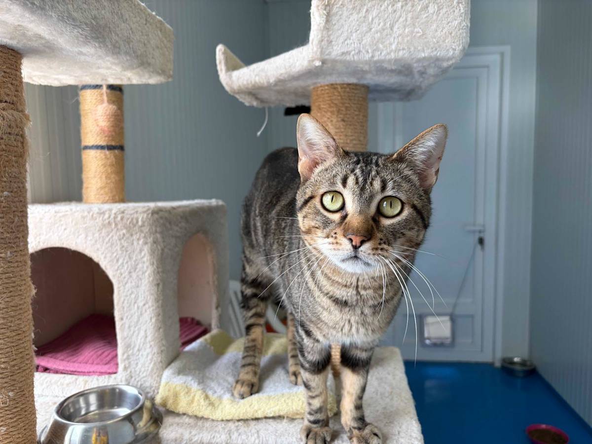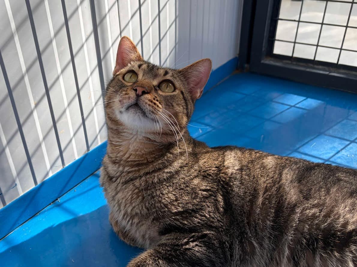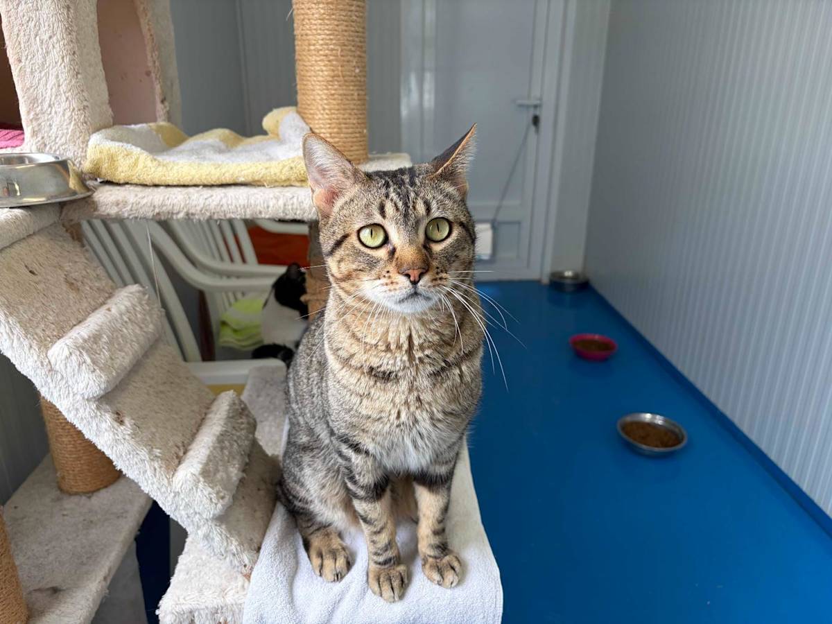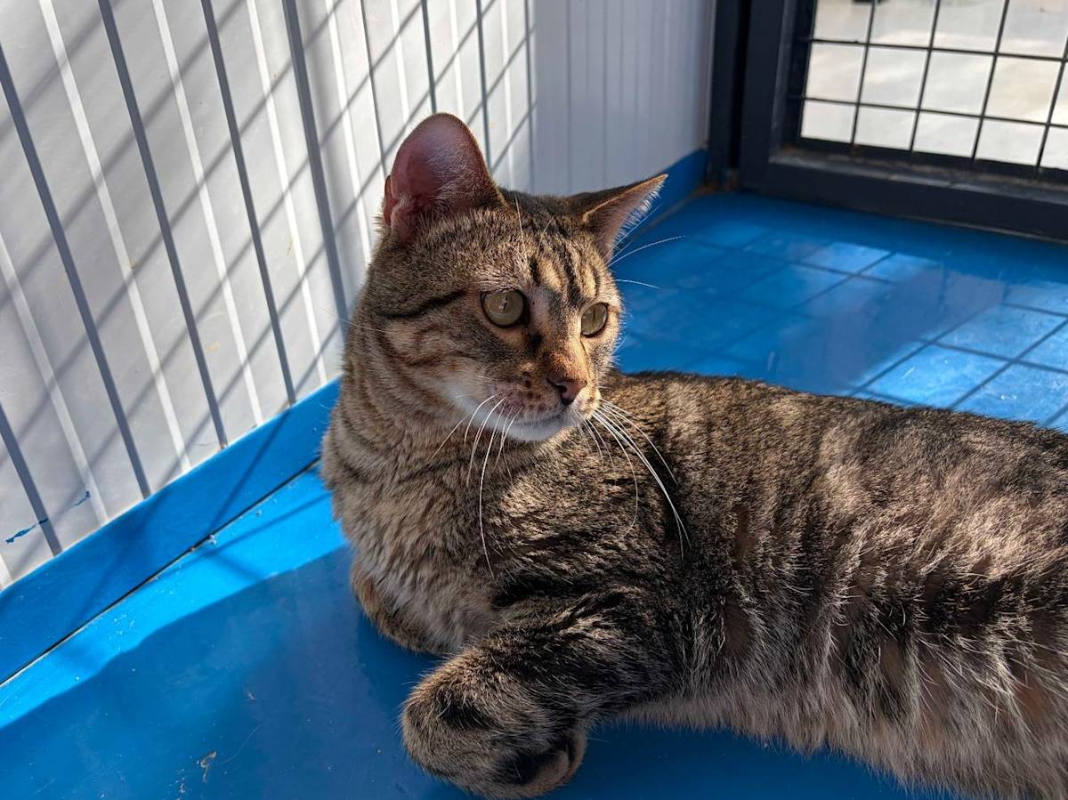 Arnold wurde in einem Stadtteil Marbellas gefunden . Er wurde positiv auf Leukose getestet und lebt jetzt in einem extra Gehege für Leukose positive Katzen im Tierheim.