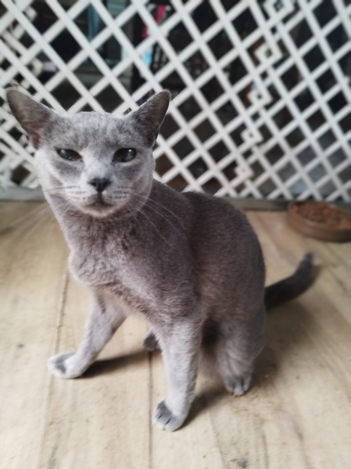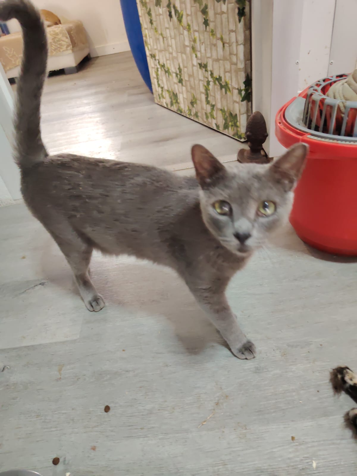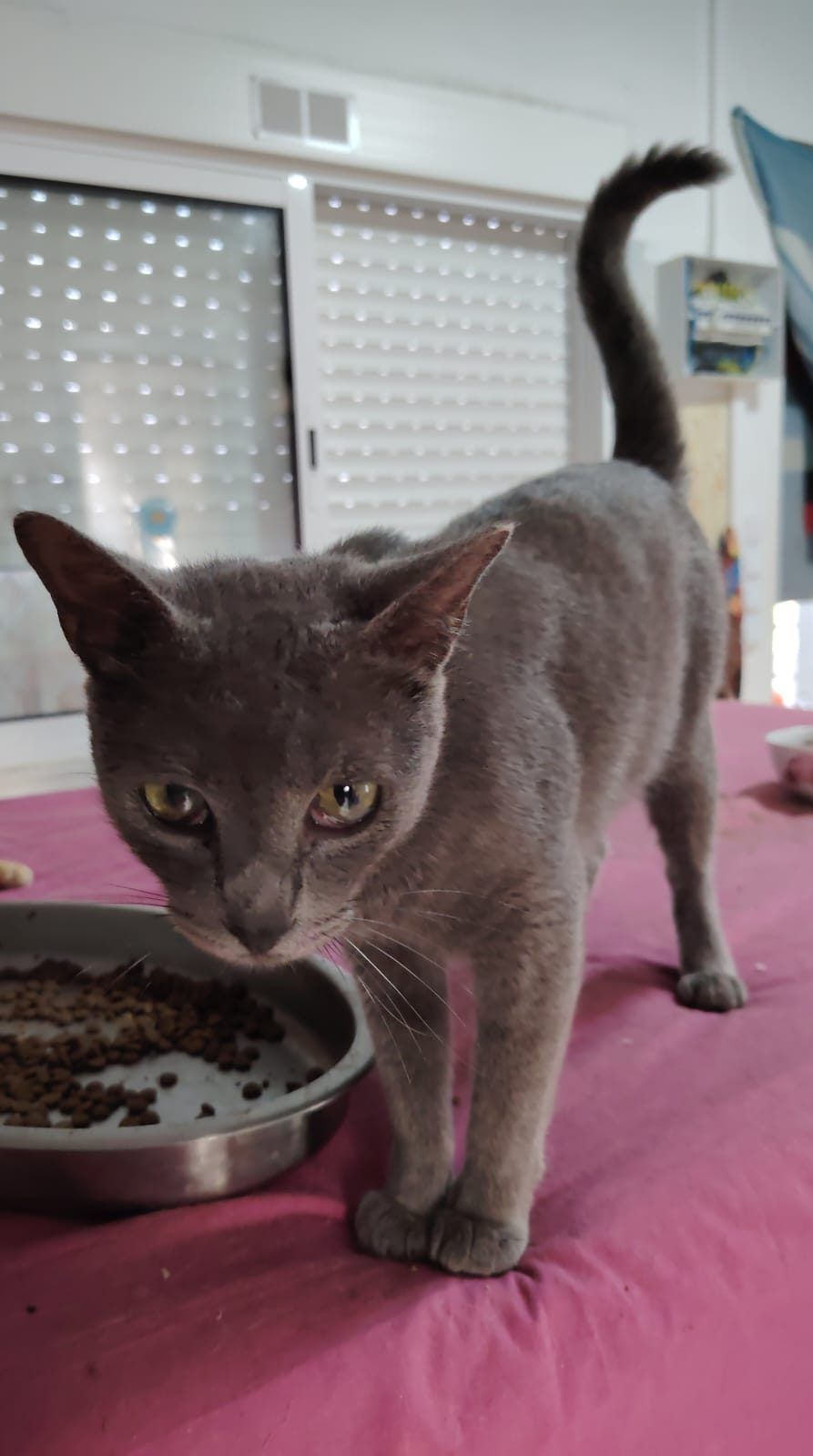 Er wurde mit seinen Geschwister gefunden , da waren sie erst ein paar Tage / Wochen alt. Leider hatten sie alle schon beim auffinden Katzenschnupfen und dadurch haben sie eine leichte Veränderung der Augen zurück behalten.